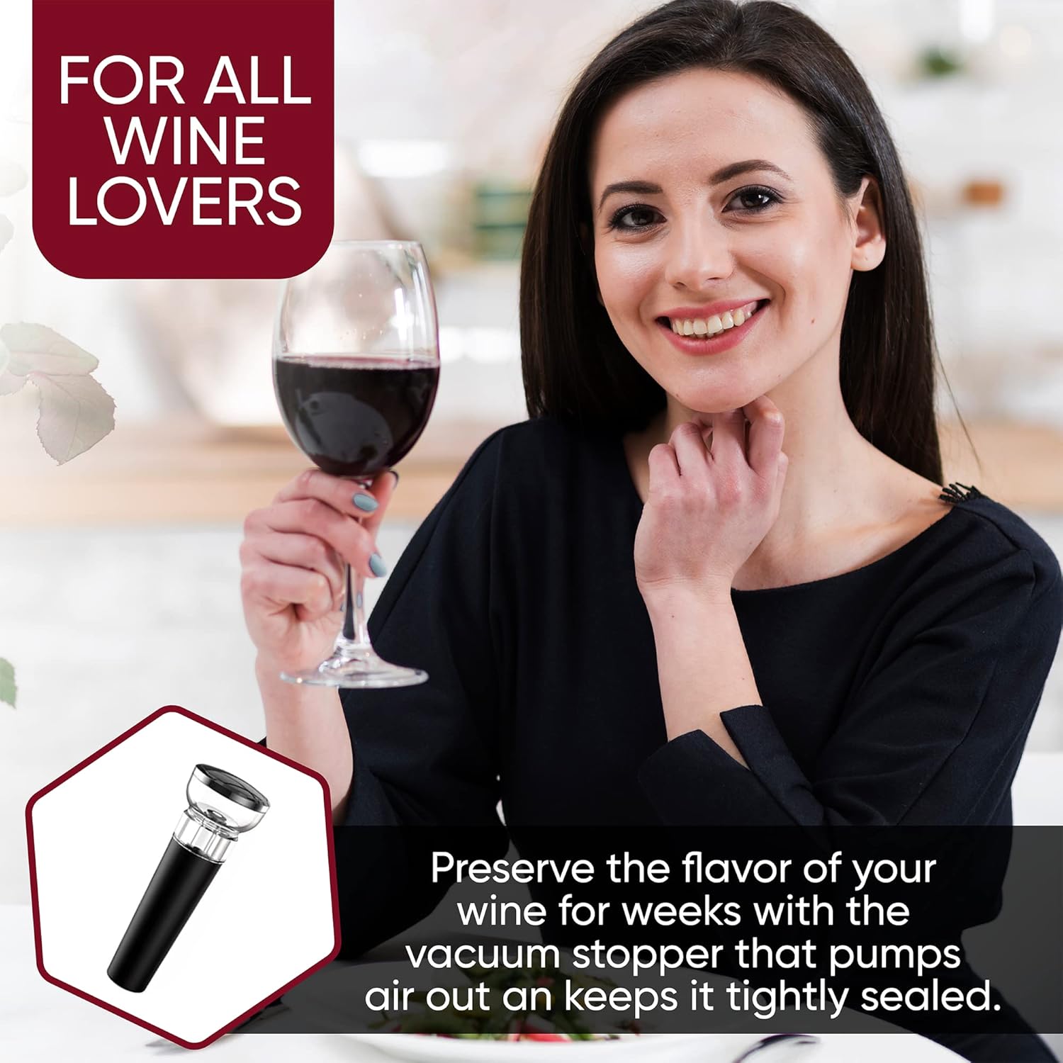 Using our easy-vacuum wine bottle stopper. you'll prevent unnecessary wine spoilage and keep your leftover wine protected and preserved for weeks. Our wine preserver quickly pumps out air from the bottle to ensure a tight seal. giving you lasting preservation for all of your favorite wines.