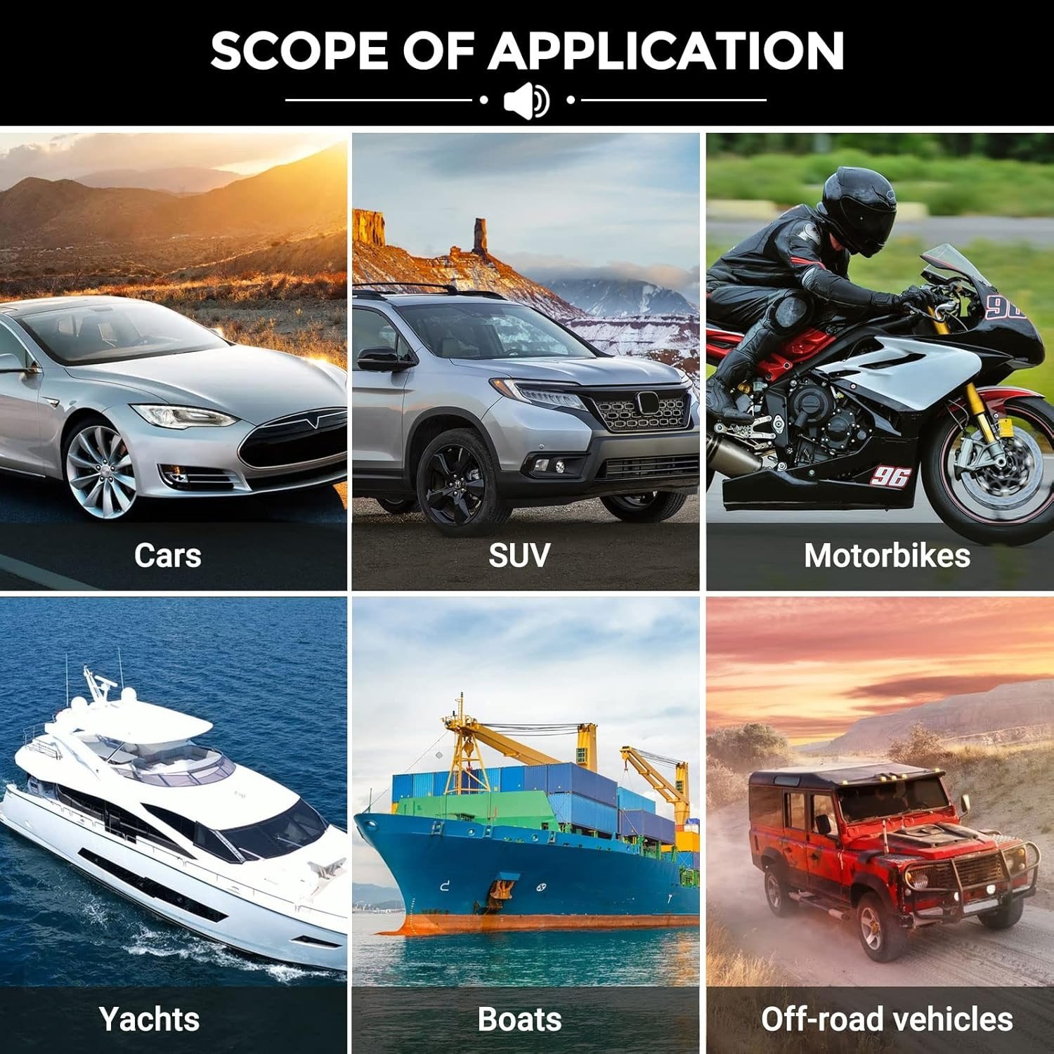 Delivering an ear-piercing 130–150DB blast. this dual horn is perfect for cars. trucks. pickups. trains. SUVs. boats. and even home alarm systems.